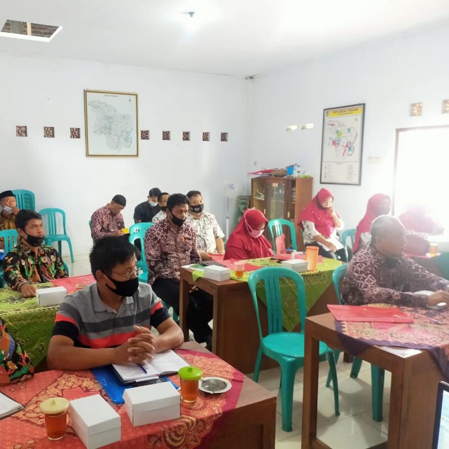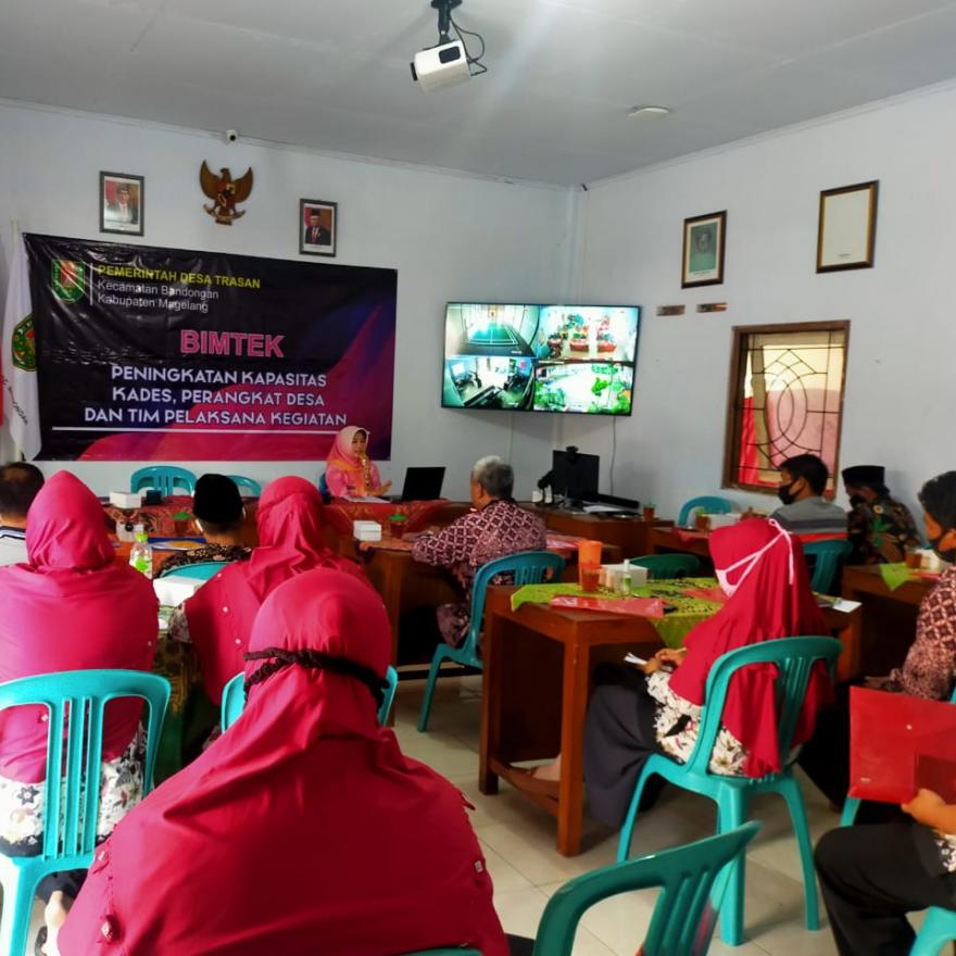 sejumlah perangkat desa yang dihadiri kepala desa trasan dan anggota Lembaga Pemberdayaan Masyarakat Desa melaksanakan bimbingan teknis peningkatan aparatur desa dan lembaga terkait <10-11/12/2020).