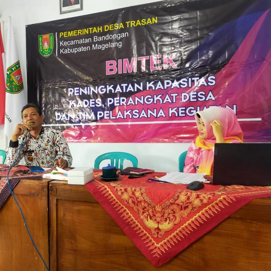 Dalam sambutan kepala desa Trasan Drs. Bagawat Gita mengatakan hal ini sangatlah perlu arahan kepada semua perangkat dan lembaga terkait dalam meningkatkan semangat kinerja baik dari segi efektifitas waktu serta aturan-aturan yang sudah ditetapkan.  Ibu Khoirul selaku kepala seksi di bidang tata pemerintahan kecamatan Bandongan mengatakan hal yang memang perlu kita ketahui dalam bekerja di pemerintahan desa khusunya di Desa Trasan seyogyanya mengikuti aturan sesuai perundang-undangan baik yang diatur di kemndagri maupun perbup. Sebagai salah satu contoh jam kerja semua perangkat desa dan kepala desa mulai pukul 07.00-15.30, seragam yang dikenakan setiap harinya juga sesuai jadwal sudah ditetapkan. Hal-hal seperti inilah yang terkadang dihiraukan kepada sejumlah perangkat desa dilingkungan wilayah kecamatan bandongan.