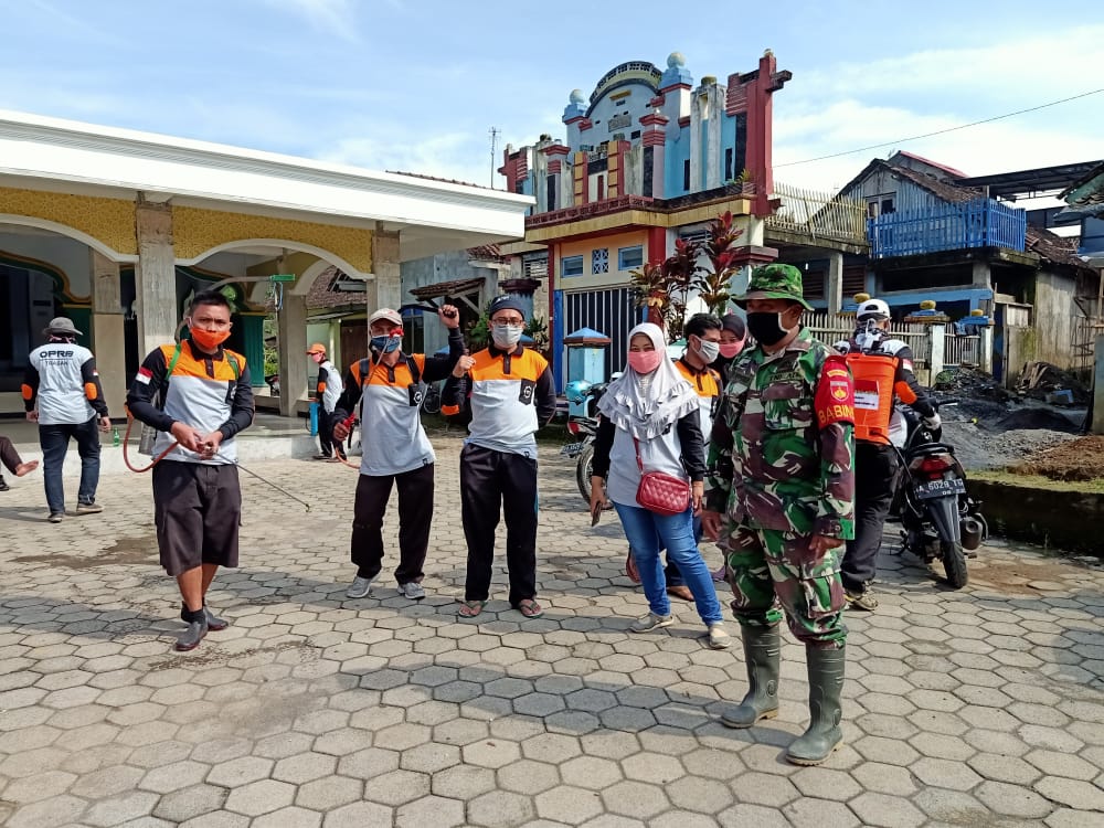 Desa Trasan - Pemerintah Desa Trasan yang dibantu Organisasi Pengurangan Resiko Bencana (OPRB-Desa Trasan) menggelar penyemprotan desinfektan kr tempat fasilitas umum. Minggu (19 April 2020).