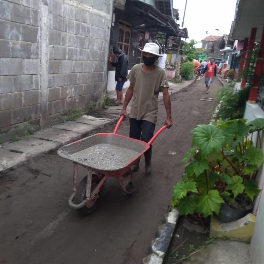 Pengecoran jalan ini bertujuan agar nantinya akan berfungsi untuk mempermudah