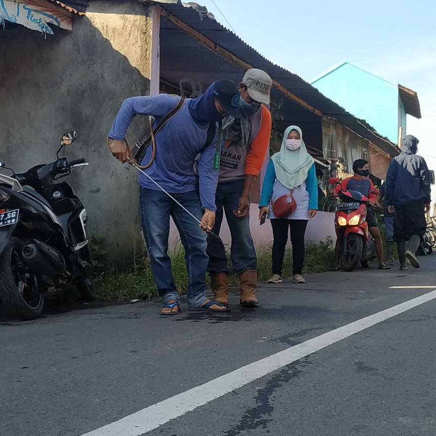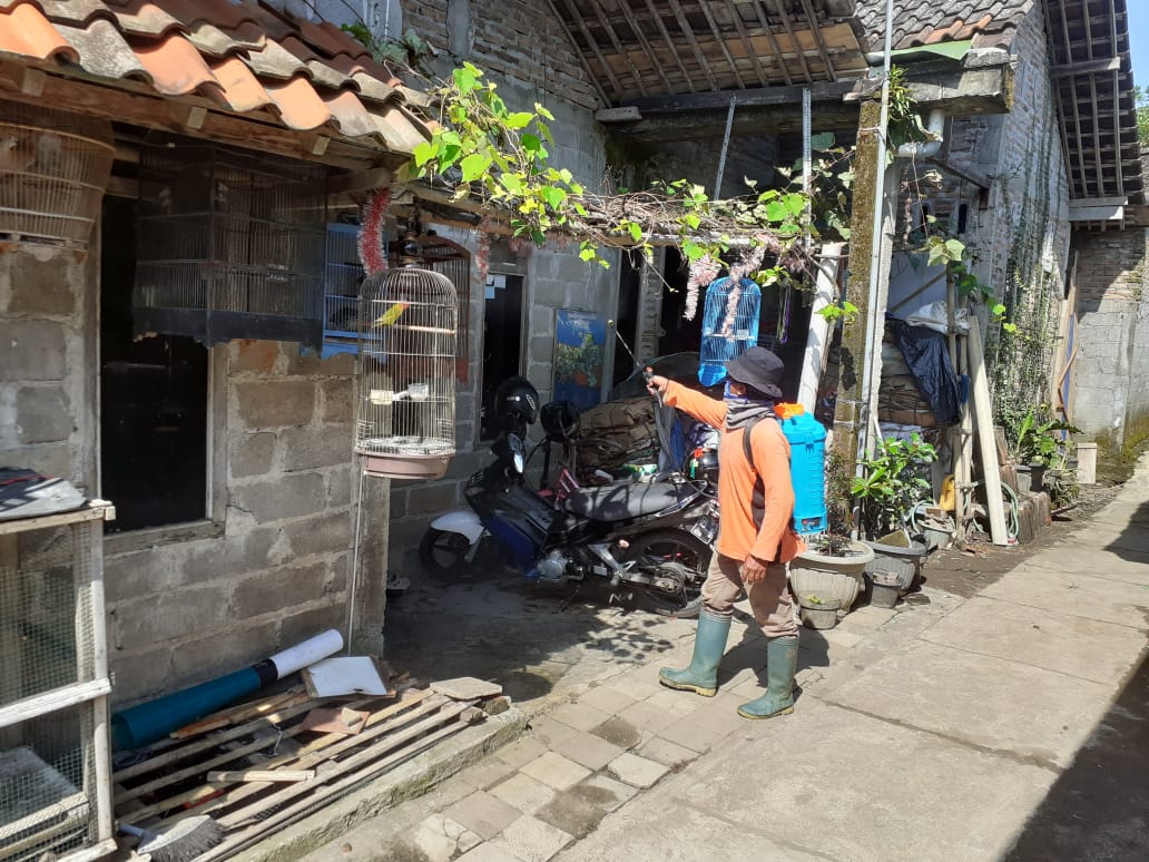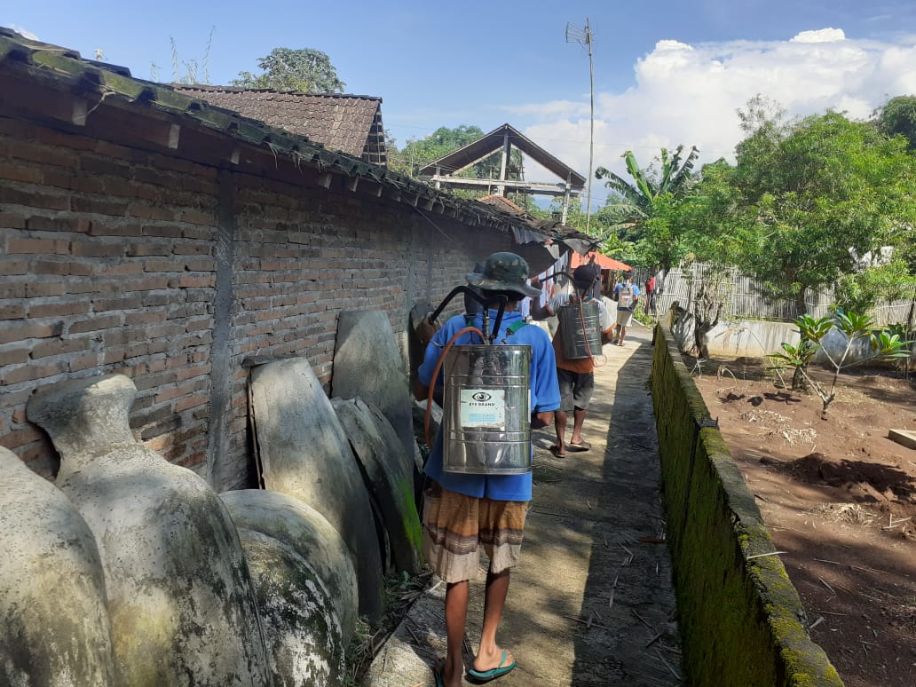 Desa Trasan - Sejumlah warga Desa Trasan, Kecamatan Bandongan, Kabupaten Magelang, melakukan penyemprotan desinfektan untuk mencegah menularnya virus Corona. Penyemprotan dilakukan hari Minggu 29 maret 2020