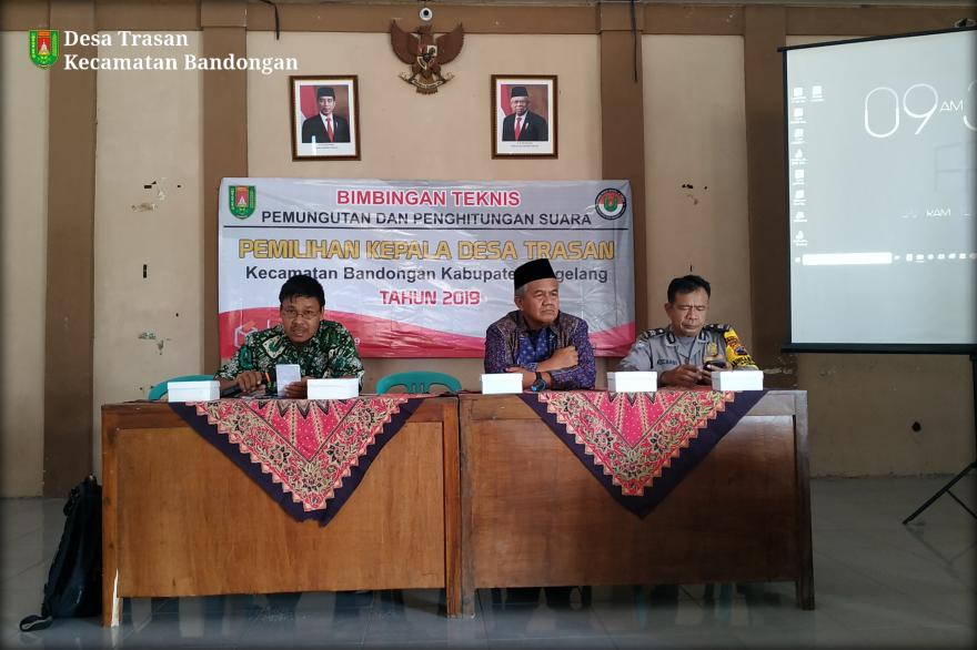 https://desatrasan.magelangkab.go.id/First - Panitia penyelenggara Pemilihan Kepala Desa menggelar bimbingan teknis (bimtek) pemungutan dan perhitungan suara tahun 2019 di gedung Sarwo Migunani Balai Desa Trasan, Sabtu (16/11/2019).