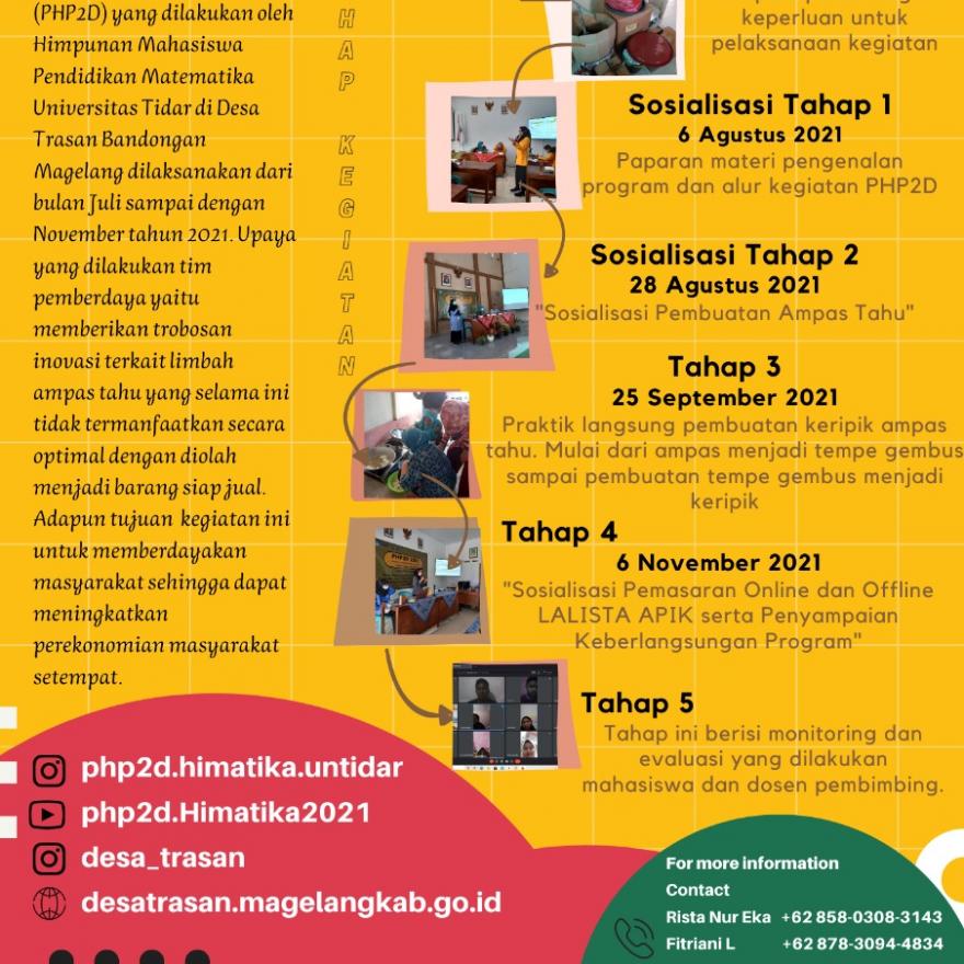 Kabupaten Magelang sendiri saat ini sedang mengupayakan pemberdayaan masyarakat untuk mengurangi tingkat kemiskinan. Oleh karena itu, diperlukan pemberdayaan masyarakat guna menurunkan angka kemiskinan daerah Kabupaten Magelang. Berdasarkan identifikasi yang dilakukan di Kecamatan Bandongan, Kabupaten Magelang ditemukan salah satu desa yaitu Desa Trasan yang mana di desa tersebut ditemukan Pabrik Tahu dengan pengolahan limbah ampas tahu yang belum maksimal, sehingga bau yang ditimbulkan sering kali menyengat.
